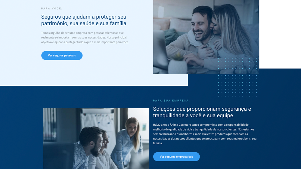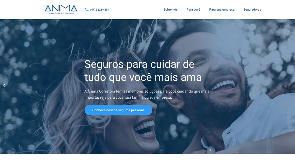 O novo site reforça a imagem da Anima como consultora de seguros confiável, aprofundando o relacionamento com clientes em necessidades pessoais e corporativas. Simplifica a geração de leads com botões de “Solicitar Cotação” acessíveis e já está preparado para escalar junto com a expansão da corretora.
